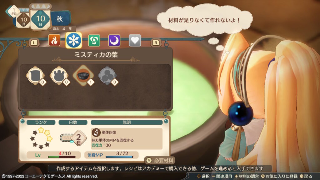 アイテムのランクは調合画面で確認できます。