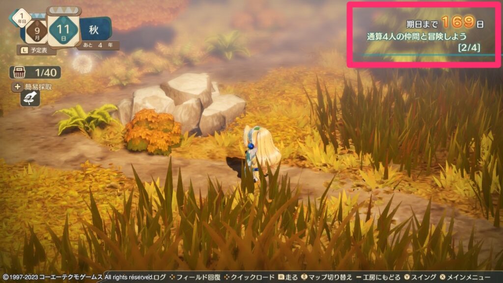 採取地に着いたら右上の数字が[2/4](または[3/4])になったことを確認しましょう。