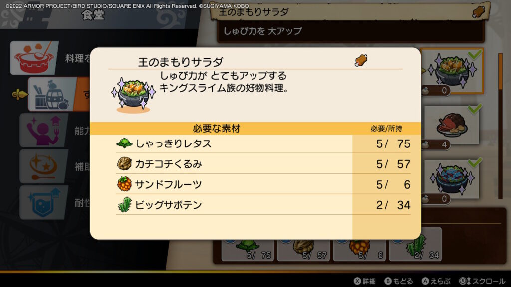 この記事では、アイテム「王のまもりサラダ」のレシピの入手方法についてご紹介します。